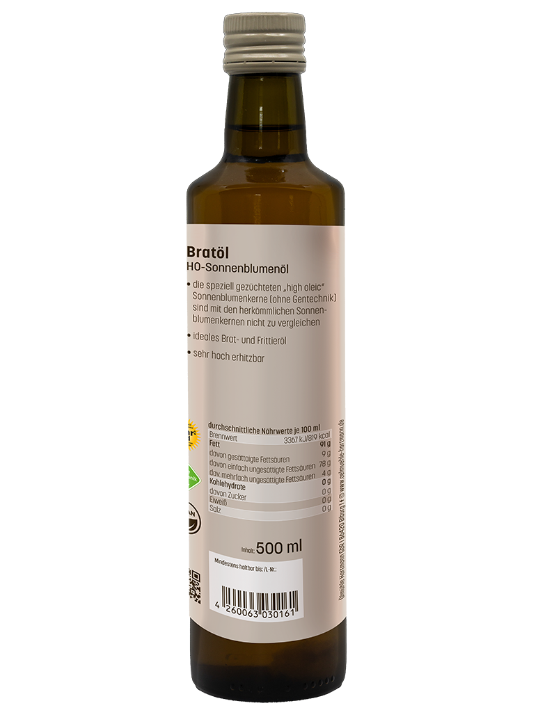 Bratöl Zutaten: HO-Sonnenblumenöl 100 % - rein aus 1. Kaltpressung kaltgepresst... mehr
