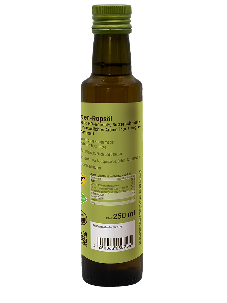 Butter-Rapsöl (mit Butterschmalz aus der Alpenregion) Zutaten: HO-Rapsöl*... mehr