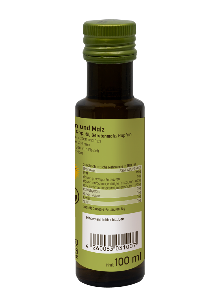 - Und das Hopfen & Malz Öl verleiht Soßen und deftigen Speisen den besonderen Kick, aber auch im Wurstsalat oder zum Einlegen von Fleisch macht es eine gute Figur.