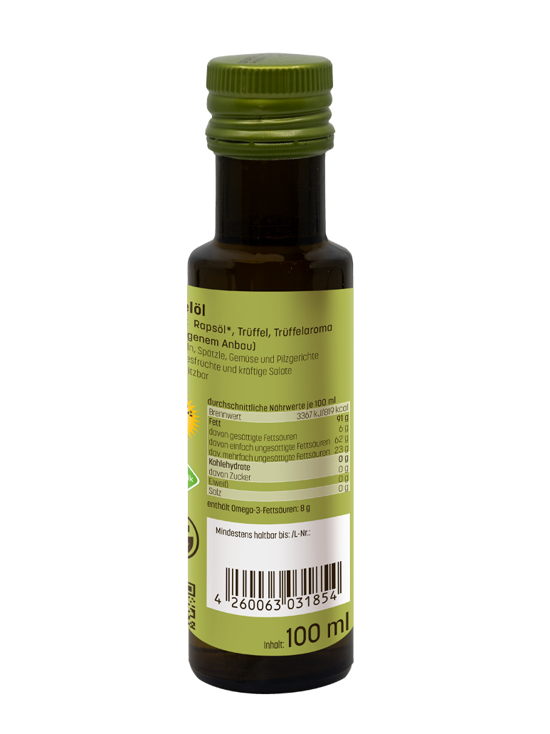 Rapsöl*, Trüffel, Trüffelaroma (*aus eigenem Anbau, 1. Kaltpressung)